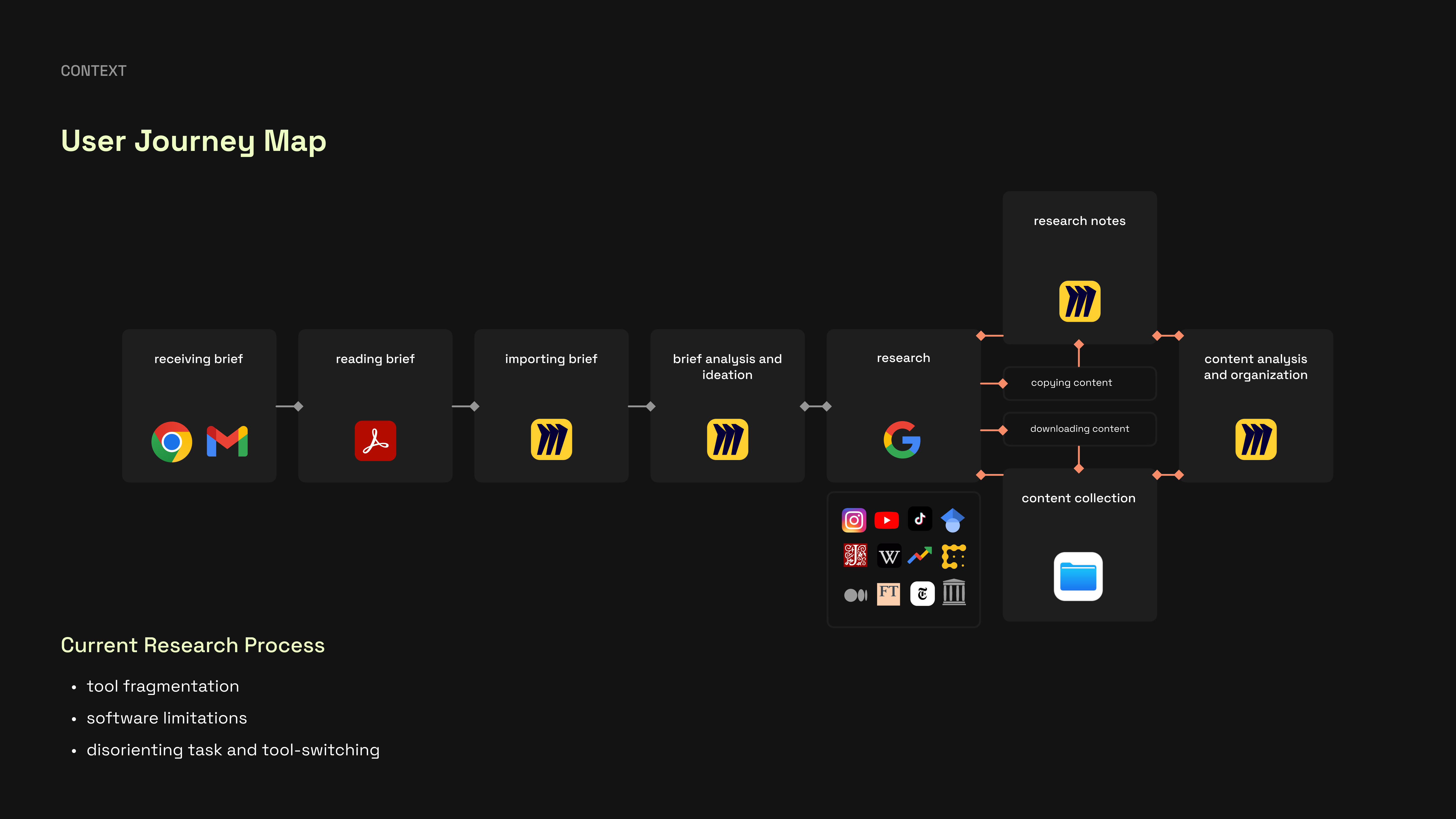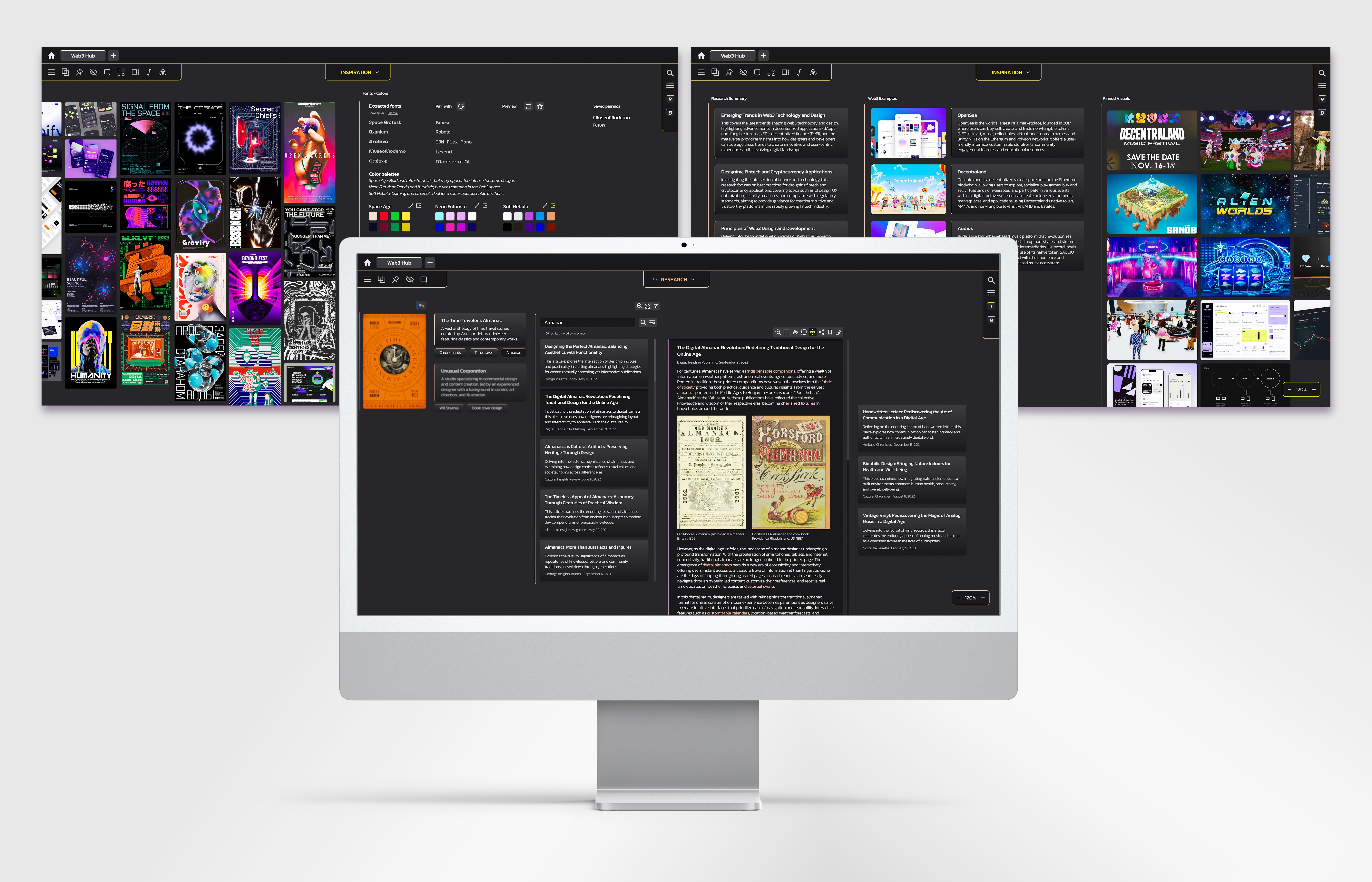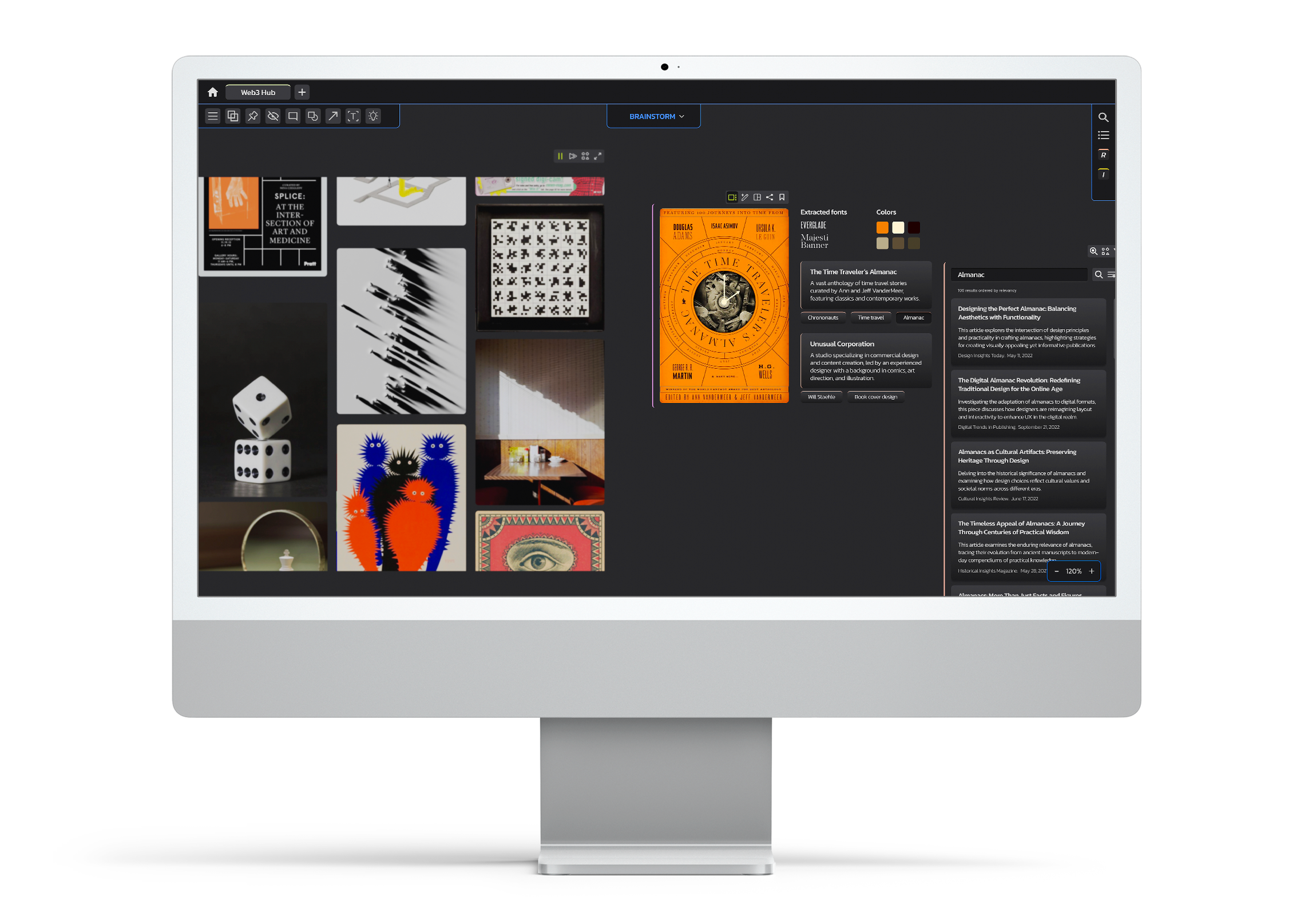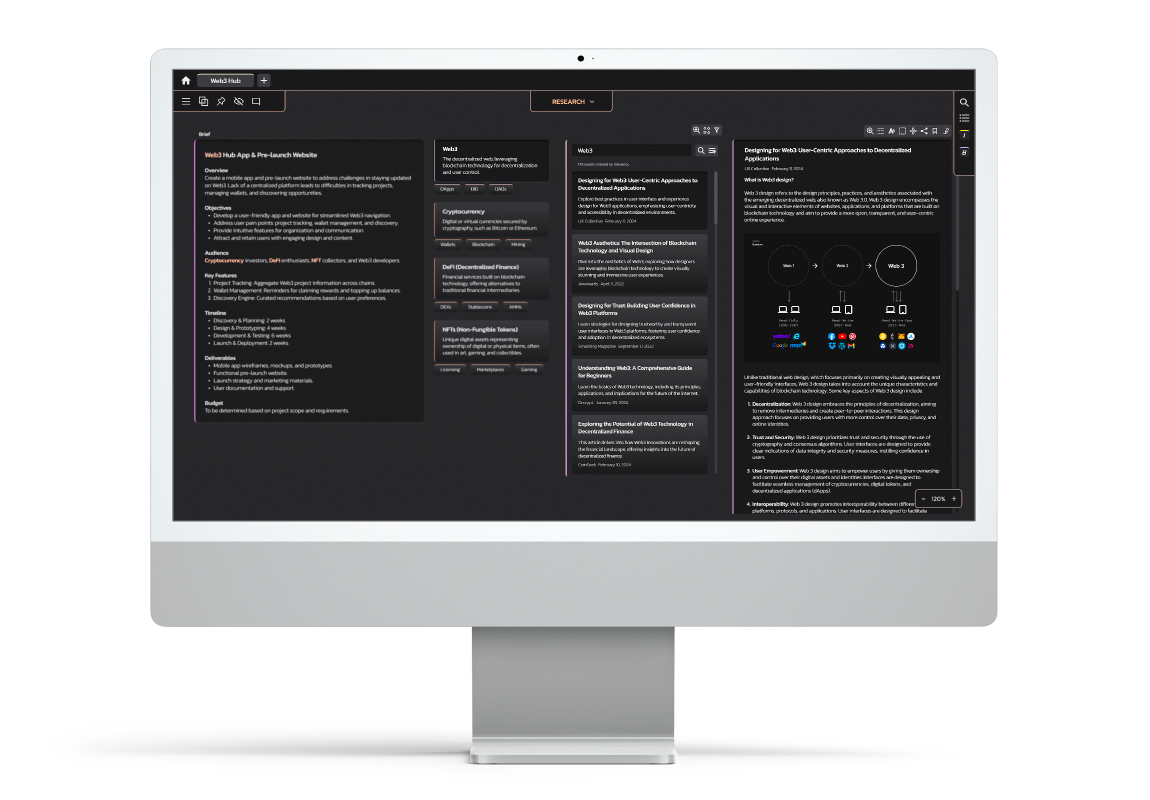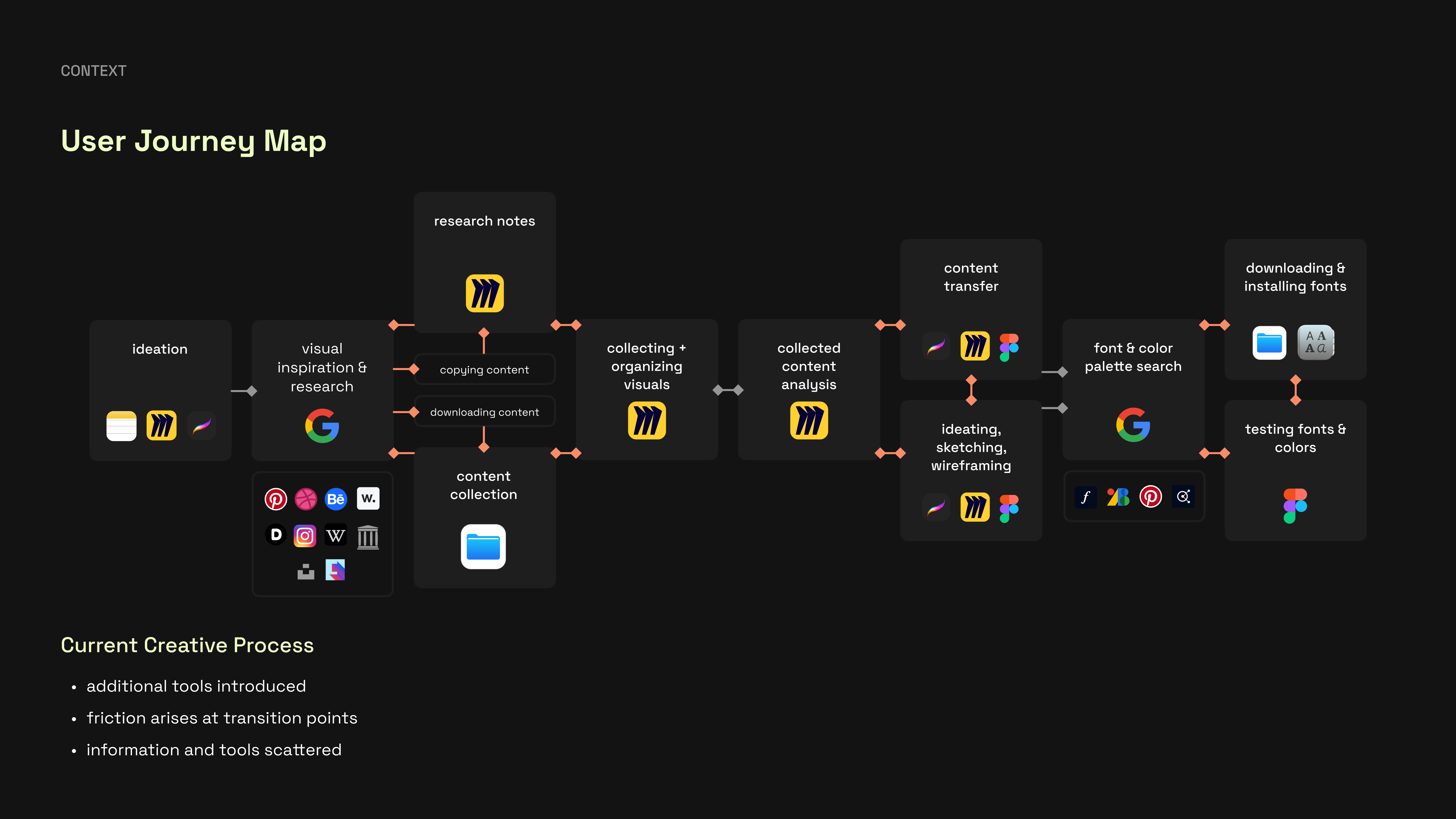 Existing software does not have the flexibility to support the rapidly evolving creative process. The preparatory process in which we research, ideate, and develop concepts suffers from extreme tool fragmentation, leading to information loss and cognitive overload.Solution