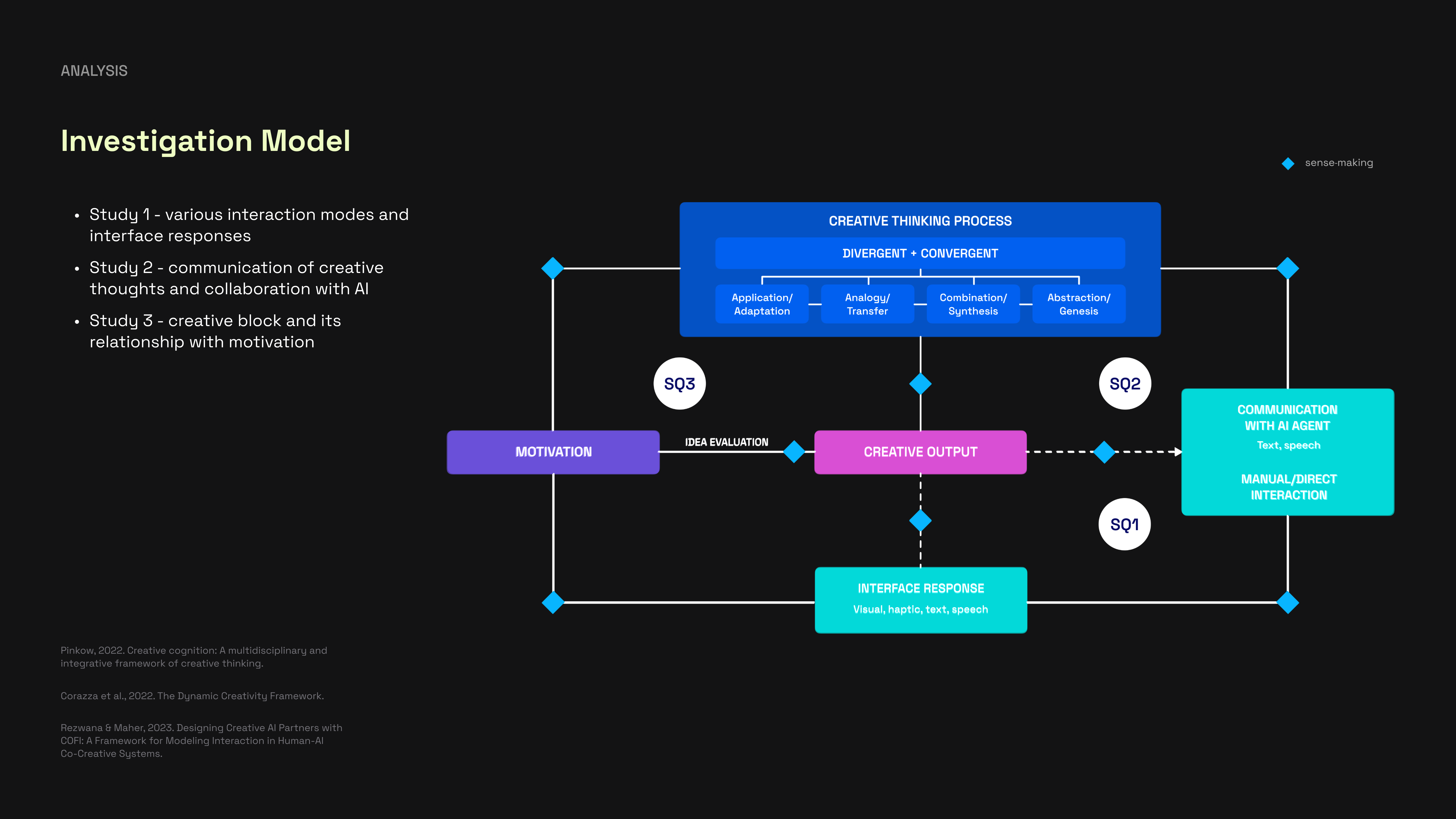 In order to further break down my main research question, I decided to focus on three distinct parts of the creative process: familiarization and research, ideation and concept development, and creative block.